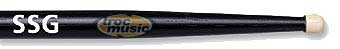 Longueur totale 40 cm. Diamètre 1,40 cm. Finition bois noir. Olive bois naturel (non-teintée) pour ne plus salir les peaux et cymbales.