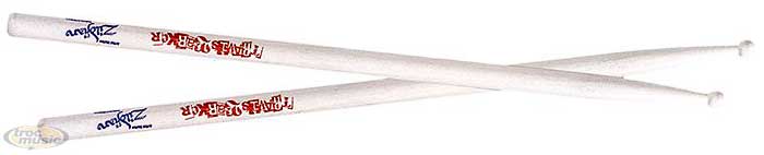 Paire de baguettes batterie finition hickory blanc, olive bois, longueur 41,60 cm et diamètre 1,51 cm.