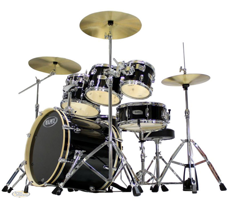 Batterie d'étude série QR. 6 Fûts 9 plis tilleul 7,2 mm, accessoires double embase. Grosse Caisse 20x16. Tom 8x7. Tom 10x8. Tom 12x9. Floor Tom 14x14. Caisse Claire 14x5,5.
