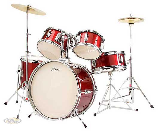 Kit batterie enfant 5 fûts (6 plis) + accessoires. Grosse caisse 16''. Coloris: noir (BK) ou rouge (RD).