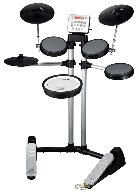 | Batterie V-Drum compacte et amusante pour batteurs de tous niveaux et adeptes du divertissement. 20 kits préprogrammés avec boutons de sélection dédiés et écran LCD rétroéclairé. Grosse caisse sans batte, à faible niveau de bruit, dont la réponse a été amélioréé. Nouveaux toms à peau en toile, offrant une meilleure sensation de jeu. Pads à double capteur pour la caisse claire et les cymbales crash/ride. Métronome avec sons au choix et tempo réglable. |