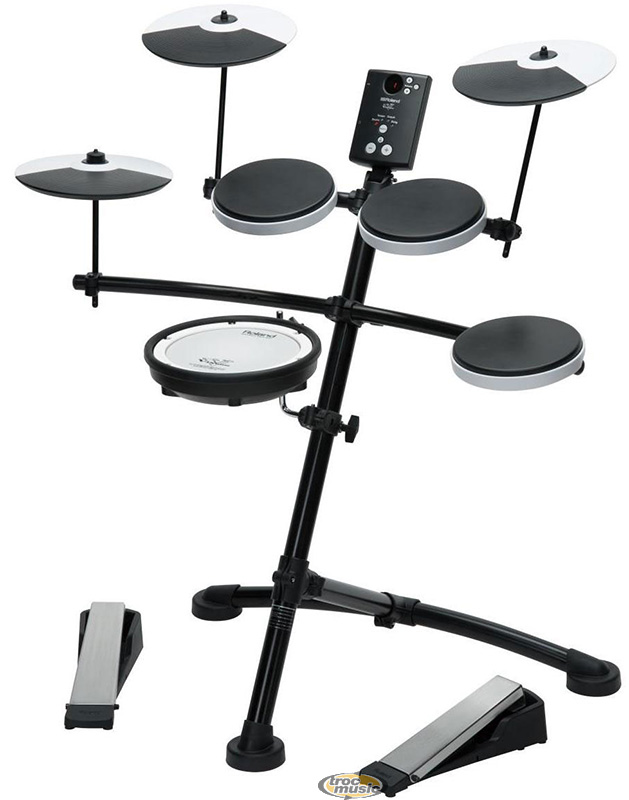 L'excellence du son et du toucher V-Drums pour un rapport qualité prix exeptionnel Set de 3 pads tom, 1 pad caisse claire pdx-8, 3 pads cymbales, 1 rack, une pédale de grosse caisse. 1 pédale hi hat, 1 module avec 15 kits programmés.