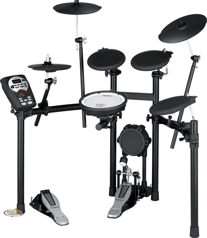 Batterie V-Drums compacte et abordable avec sons SuperNATURAL. V-Pad (PDX-8) à peau maillée pour caisse claire. Stand de batterie MDS-4V.