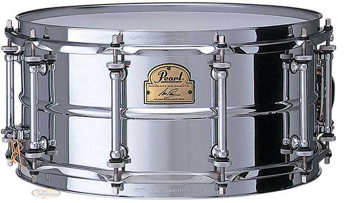Caisse claire 14 x 6,5''. Type Sensitone Classic. Acier chromé. Cercles 10 tirants ''Super Hoops II''.