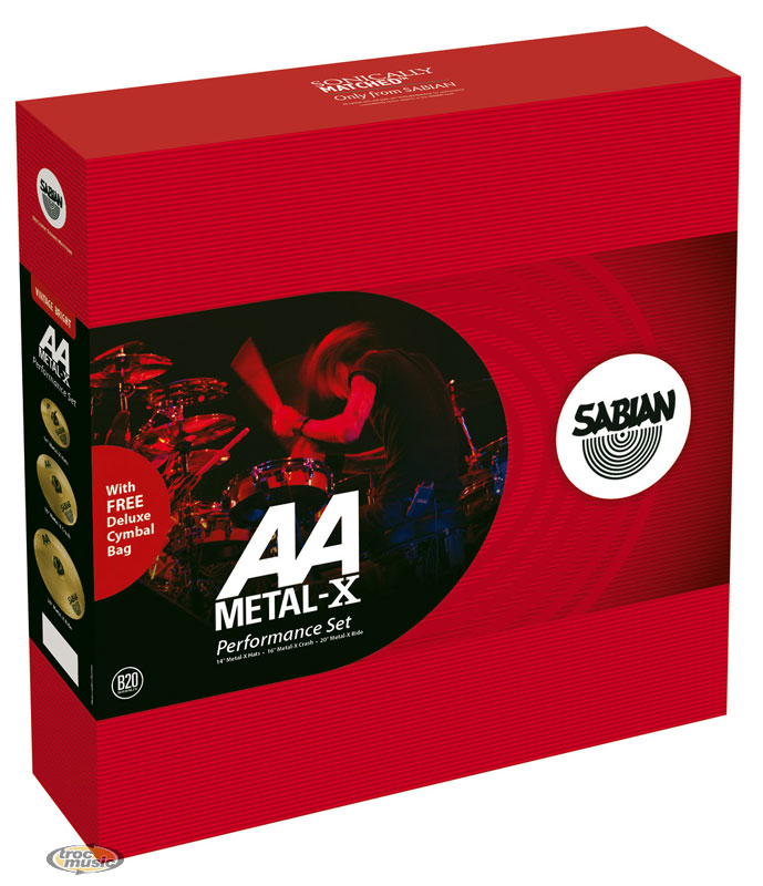 Set harmonique: 1 Hi-Hats Métal-X 14'', 1 Crash Métal-X 16'' et 1 Ride Métal-X 20''.
