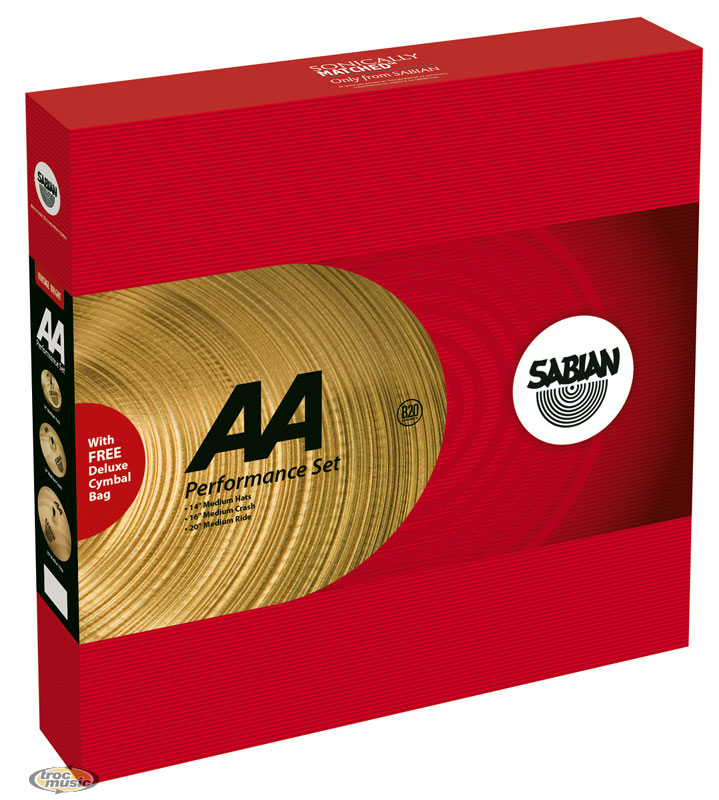 Set cymbales: 1 Hi-Hats Regular 14'', 1 Crash Médium 16'', 1 Ride Médium 20'' et 1 Splash 10''.