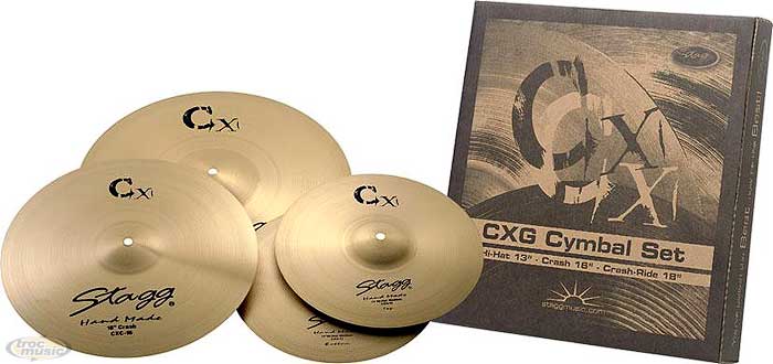 Jeu de cymbales en laiton pour débutants : crash-ride 18'' + crash 16'' + charleyston medium 13''.