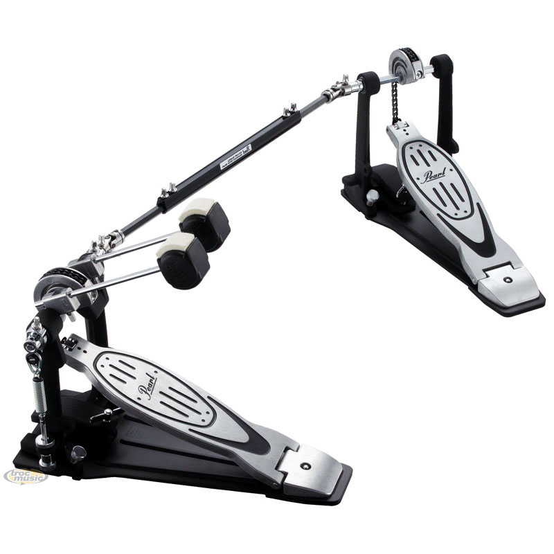 Double pédale grosse caisse pour gaucher. Système PowerShifter: 3 réglages (souple, moyen et ferme). Transmission par simple chaîne.
