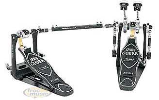 Double pédale grosse caisse Iron Cobra Flexi Glide. Courroie Kevlar. Transmission à courroie.
