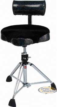 Siège pour batteurs avec assise type découpe de selle moto et dossier réglable d'avant en arrière et en hauteur. Hauteur réglable de 51 à 71cm.