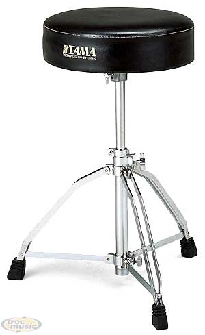 Siège batterie rond de 33 cm de diamètre, 90 mm d'épaisseur. Pieds à double embase. Plage de réglage de hauteur 445 mm-670 mm.