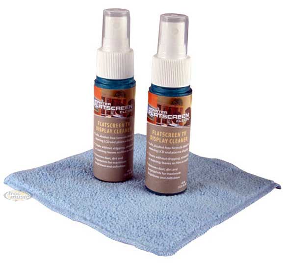 Mini kit de nettoyage d'écrans (tactiles) de synthétiseurs, consoles de mixage, analyseurs audio, LCD, PDA, etc. Contient 2 sprays de 45ml et une chiffonnette en microfibres.