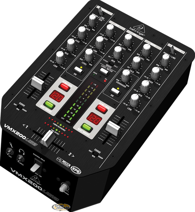 Console DJ professionnelle 2 canaux avec interface audio USB, compteur de BPM, contrôle par VCA et ensemble complet de logiciels.