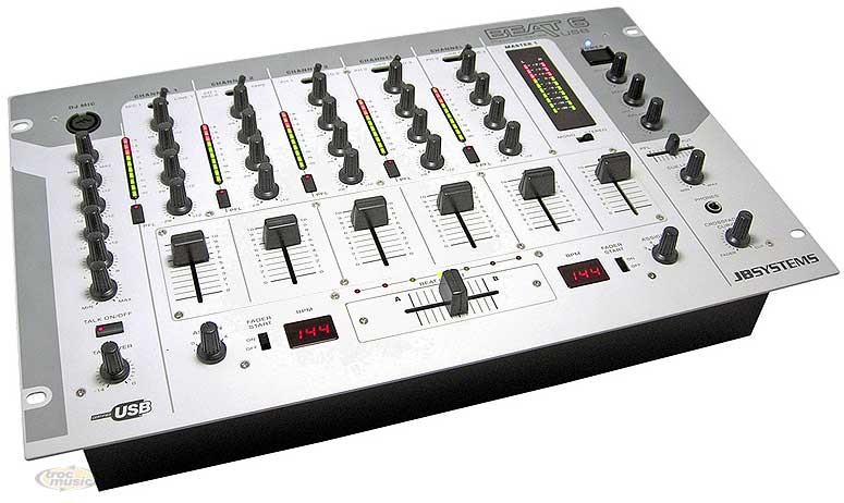 Table de mixage 19'' 7 U avec 2 ports USB, 14 entrées réparties sur 6 canaux.