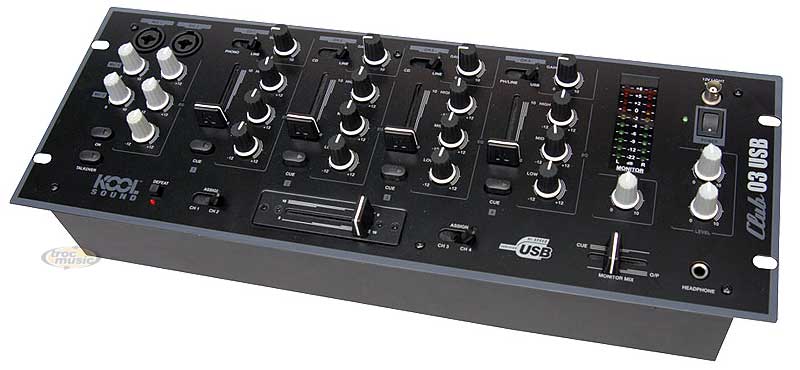 Table mixage 19'', 4 voies / 10 entrées, 1 USB entrée/sortie, sortie en XLR et RCA.