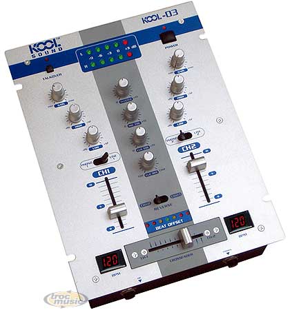 Mixer DJ 4 entrées / 2 voies. Compteur BPM automatique (un afficheur par voie).