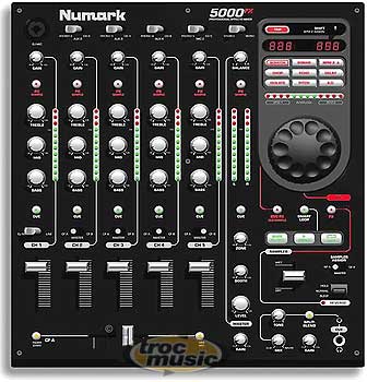Mixeur DJ 5 canaux avec fonctions sampler, scratch et effets.