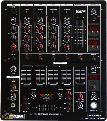Table de Mixage 4 voies, 47 effets 24Bits, 4 Line 4 Phono/Line, compteur BPM 1 Sortie Master/1 Booth.