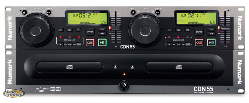 Double Lecteur de CD Pro. Mémoire anti-chocs. 1 boucle automatique. Démarrage instantané. Fonction lecture simple. Variations du pitch de 8% ou 16%. Molette de recherche rapide et d'ajustement.