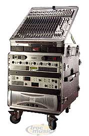 Flight case régie sur roulettes avec plan inclinable 12 unités sur dessus et 10 unités devant et derrière.