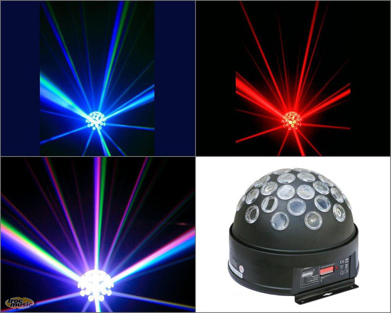 Un effet LED DMX extrêmement compact. Projette 34 faisceaux colorés très nets avec des effets intégrés dynamiques! Fonction gradateur allant de 0 à 100 % et fonction stroboscope ultrarapide. Vitesse de rotation réglable (extrêmement lent à très rapide). Contrôle via DMX : 1 ou 3 canaux. Mode autonome : activation automatique ou sonore via micro interne. Conçue sur base d'une LED RGBW très puissante de 10 watts.