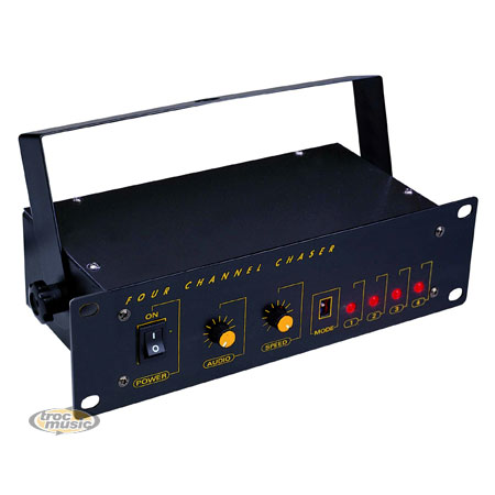 Contrôleur lumière type chenillard 4 canaux de 1000W. Pour charges inductives ou résistives. Fusible de protection 10A. Choix de 4 programmes de modulation à vitesse réglable.