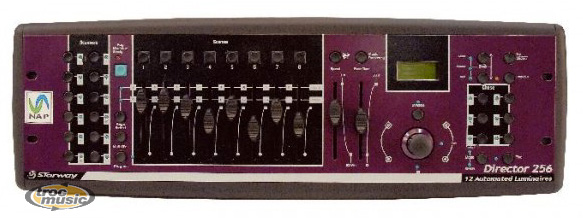 | 192 circuits en sortie. 12 projecteurs asservis. 16 circuits maximum par projecteur. 30 pages de 8 scènes. 240 scènes programmables. 6 séquences programmables. Fonction Fade Time. Fonction Black-out. Accès individuel à tous les paramètres de chaque projecteur. Accès rapide à toutes les scènes, séquences et macros. Visualisation de l'ensemble des fonctions sur écran LCD. Sauvegarde des mémoires en interne. Détection musicale par microphone intégré et entrée ligne sur embase RCA. Déclenchement des scènes et des séquences en MIDI. Contrôle des canaux Pan/Tilt des projecteurs sur joystick. Sortie DMX 512 sur fiche XLR 3 broches. Alimentation externe (DC 9V-12V, 220 mA). |