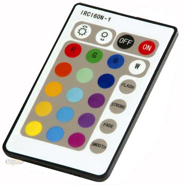Télécommande pour lampes MR. Contrôle des couleurs, de l'intensité, des strobes, et la programmation. Format CB.