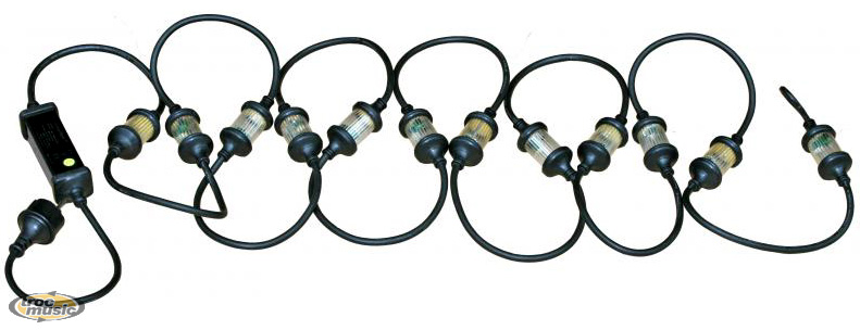 | Magnifique effet stroboscopique convenant pour toutes sortes de décorations. Cette guirlande électrique de 6,2m mètres, étanche (IP44), contient 12 lampions stroboscopiques à LED qui produisent des flashs selon un rythme aléatoire. Idéal pour les activités itinérantes : il suffit de brancher la LED Flash Rope (ultra légère et construite en polycarbonate) dans n'importe quelle prise murale de 230 volts pour que ce splendide effet se mette en route. Un œilleton de fixation des plus solides en fin de chaîne permet une installation facile de la LED Flash Rope. |