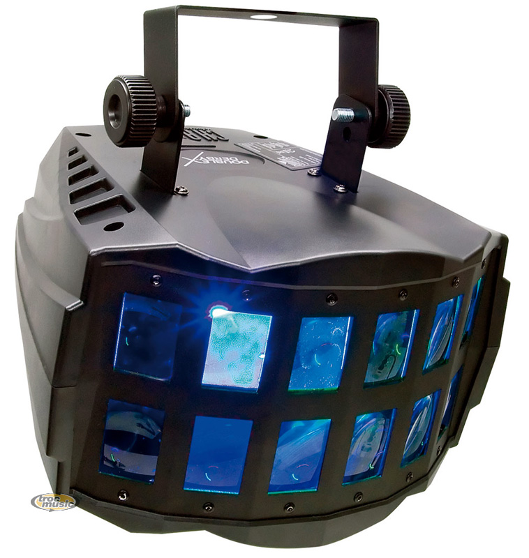 Projecteur LED mode DMX 512 : 2 canaux. Contrôle de la vitesse du moteur. Programmes automatisés via maitre/esclave ou DMX. Fonctionne au rythme de la musique via maitre/esclave ou DMX. Lyre de fixation. Angle de couverture: 132 degrés. Poids: 2,7 kg. Dimensions: 283mm x 297mm x 264mm.