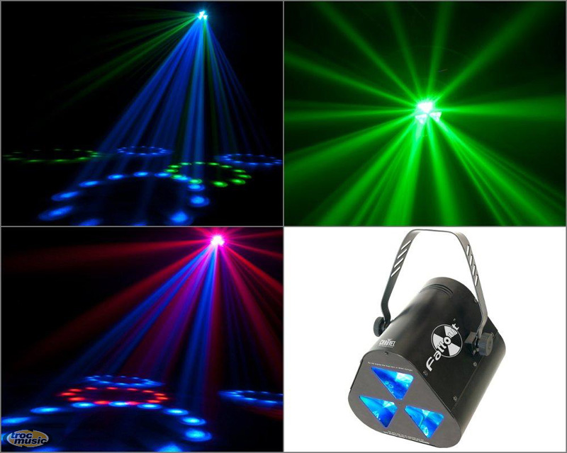 | Effet DJ à led. Mode DMX 512 : 4 canaux. Angle de couverture : 80°. Programmes automatisés via maitre/esclave ou DMX. Fonctionne au rythme de la musique via maitre/esclave ou DMX. Nombre reliable : jusqu'` 20. Lyre de fixation. Source de lumière : 36 LED, (12 rouges, 12 vertes, 12 bleues). Alimentation à commutation automatique : 100V/240V 50/60Hz. Poids : 2,8 kg. Dimensions : 251mm x 224mm x 325mm. |