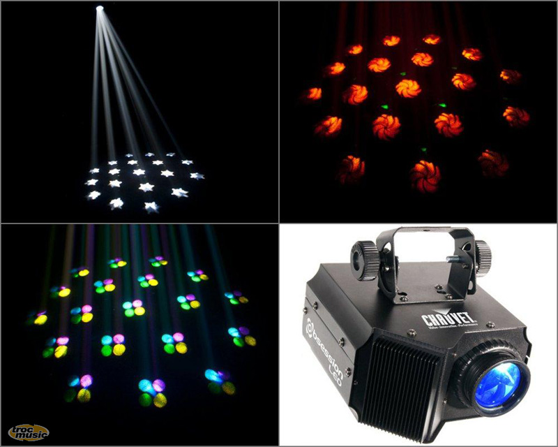 Mode DMX 512 : 3 canaux. 1 roue de couleurs et gobos combinés. Réagit aux dynamiques musicales. Lyre de fixation incluse. Angle d'ouverture: 33 degré. Source de lumière: 1 LED 10W. Puissance & consommation: 230V-50 Hz / 16 W - 0.2A. Poids: 2.3 kg. Dimensions: 236 x 191 x 178 mm.