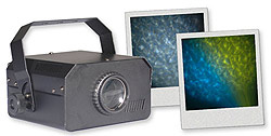 Effet waterwave avec 4 couleurs + blanc. Mode manuel, auto ou maître/esclave. 2 canaux DMX : Intensité - Rotation. Réglage manuel du focus. Effet strobe. 1 LED blanche de 10W CREE. Alimentation : 100-240V AC, 50/60Hz. Consommation max : 15W. Dimensions : 280mm x 280mm x 150mm. Poids : 2.6 Kg.
