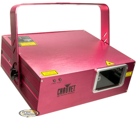 Combiné laser vert et bleu. DMX : 10 canaux. Réagit aux rythmes de la musique. Class 3R. Lyre de fixation. Source de lumière laser :vert 532nm/30mW - bleu 473nm/40mW. Alimentation à commutation automatique : 100V/240V - 50/60Hz. Poids: 3,5 kg. Dimensions: 287mm x 340mm x 230mm.