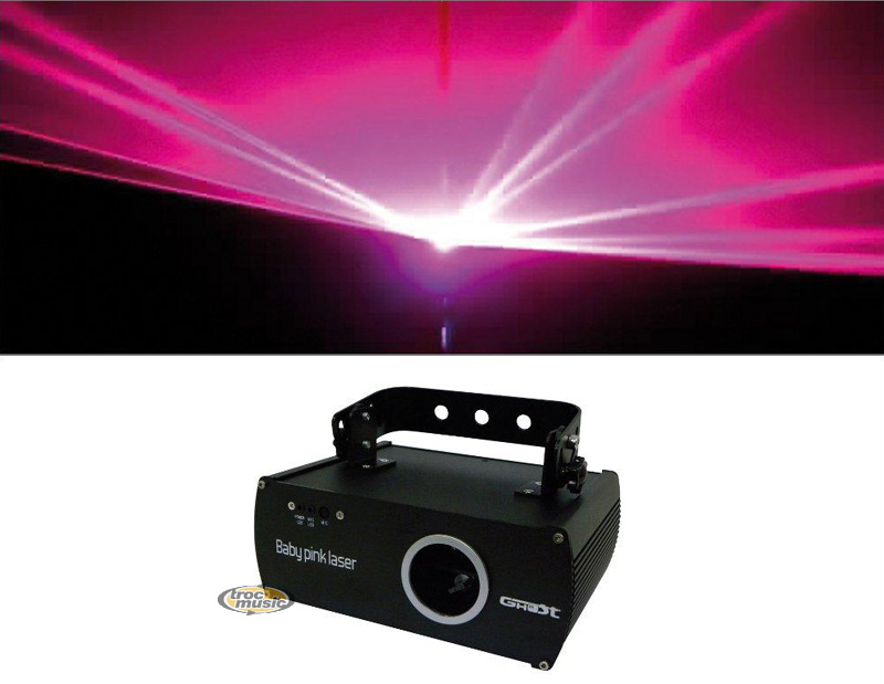 Laser rose 350MW 7CH DMX 100 figures 300 effets. 2 sources laser : Rouge 200mW/650nm + rose 150mW. Sup. à 100 effets. Moteur pas à pas haute vitesse. Mode musical, Maître/Esclave. XLR 3 broches pour mode DMX ou lien Maître/Esclave. Consommation 20W. DMX : 7 Ch.