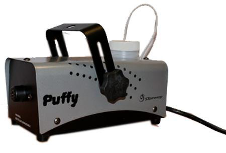 La Puffy est une mini machine à fumée de 400W. Elle est accompagnée d'une télécommande filaire de 4 mètres avec témoin de chauffe. Temps de chauffe 4min / Débit continu 2,30min. Dimensions (L x W x H): 245 x 135 x 140 (mm). Poids: 2.6 Kg. Consommation / Puissance: 400 W. Canaux DMX: 4.