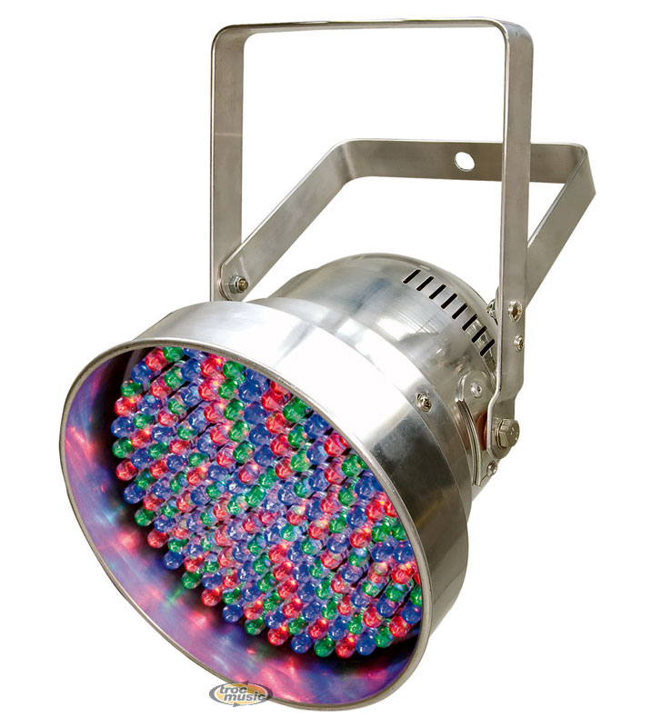 PAR64 de 183 LEDs Chrome. Puissance de LED : 0,25W. Type : RGB 10mm. LUX : 2020@1m. Ampérage : 20mA. Canaux DMX : 3 ou 7. Nombre reliable : jusqu'` 25. Poids et volume : 1,3kg - 213 x 225 x 309mm.