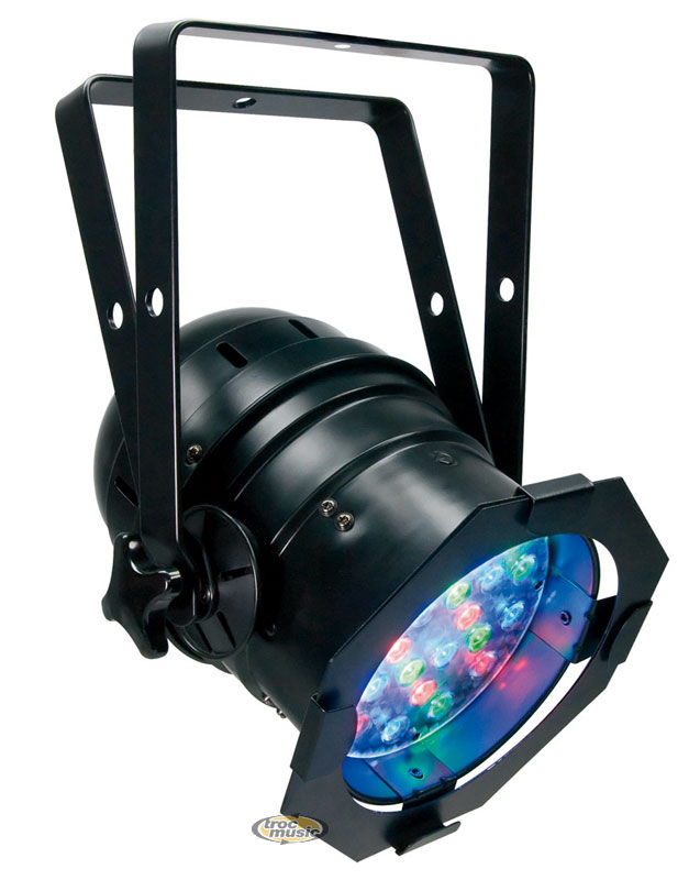 Couleur du Projecteur : Noire. Puissance de LED : 1W. Type : RGB. LUX : 3840@1m. Ampérage : 350mA. Nombre de LEDs : 24. Canaux DMX : 3 ou 7. Nombre reliable : jusqu'` 15. Poids et volume : 2kg - 276 x 274 x 370mm.