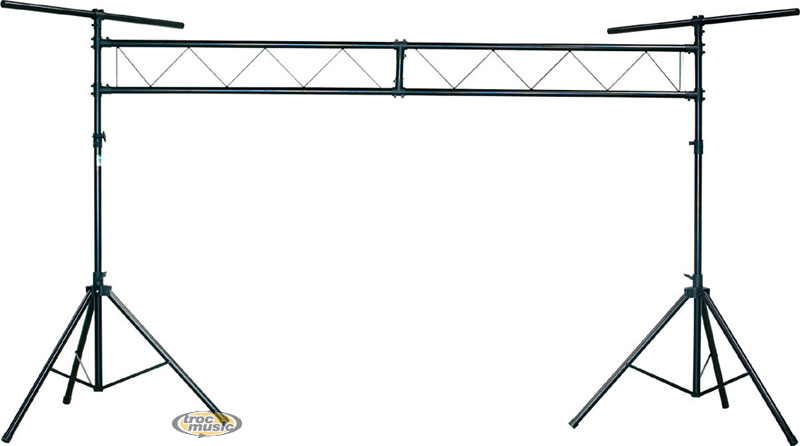 Portique éclairage 3m facile à monter. Barres en T. Capacité de charge distribuée : 89 Kgs. Longueur 3m. Hauteur maximale 2.70m. Poids 20 Kg.