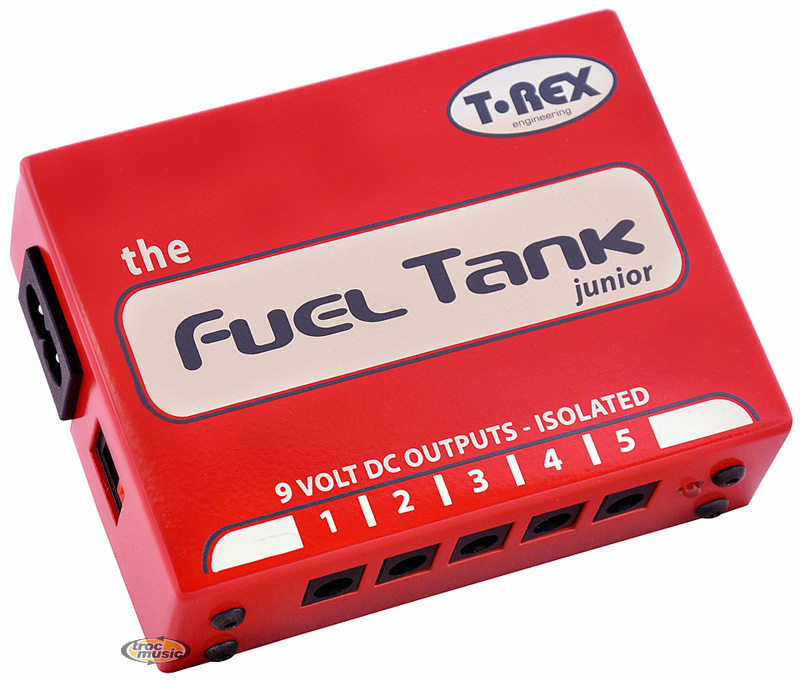 Fuel Tank Junior comprend 5 sorties 9V isolées pour alimenter vos pédales. Livré avec 10 câbles d'extension, 1 câble de liaison et un câble série pour alimenter une pédale 18V.