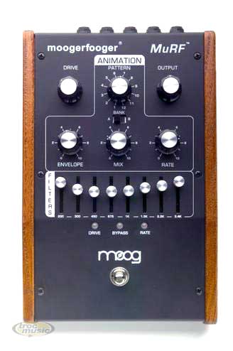 MurF, c'est Multiple Resonance Filter Array, soit un ensemble de 8 filtres à fréquence fixe, résonants et qualité Moog, 100% analogique comme sur les modulaires Moog. La section Animation permet de séquencer l'enveloppe des 8 filtres selon 24 paternes.