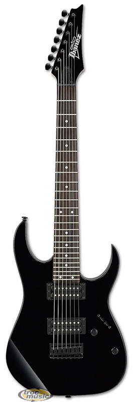 | Guitare 7 cordes. La RG est le modèle le plus immédiatement identifiable d'Ibanez. 30 années au service du métal ont forgées ce monstre de performance, de rapidité et de puissance. Que votre choix se porte sur un Chevalet fixe ou notre indétrônable Vibrato à blocage, la RG est un instrument de précision. Humbucker STD7-C2 (chevalet) + Humbucker STD7-C1 (manche). accastillage noir. corps Nato. manche GRG-7 érable. touche palissandre 24 cases Frets Jumbo. Chevalet Fixed Bridge 7 . |