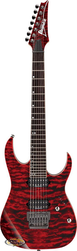 | Guitare 7 cordes. La RG est le modèle le plus immédiatement identifiable d'Ibanez. 30 années au service du métal ont forgées ce monstre de performance, de rapidité et de puissance. Que votre choix se porte sur un Chevalet fixe ou notre indétrônable Vibrato à blocage, la RG est un instrument de précision. Humbucker DiMarzio/IBZ-7 (manche et Chevalet ). Accastillage chrome noir. Corps tilleul américain. Table érable marbré. Manche Wizard Premium érable et noyer. Touche palissandre 24 cases. Chevalet fixe Tight-End R-7 . |