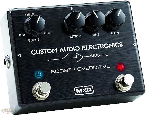 Dunlop MXR Custom Audio Electronics Boost/Overdrive. La MC402 associe un overdrive dynamique et un boost réglabe jusqu'` +20dB. Contrôles: Boost, Niveau de sortie, Tonalité et Gain.