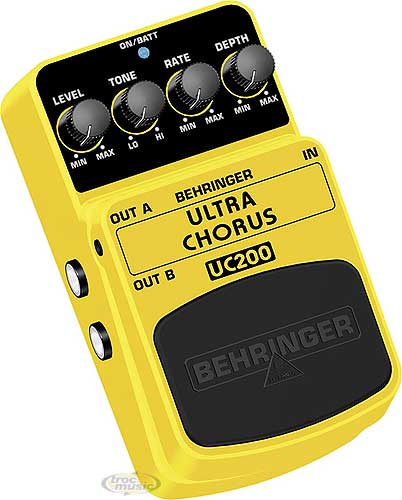 Pédale de chorus stéréo ultime. Commandes Level, Tone, Rate et Depth.