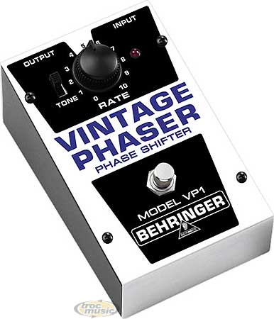 Phase shifter de type Vintage, tridimensionnel. Commande Rate et sélecteur Tone.