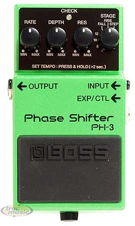 Phaser classique de BOSS dont des effets à 4, 8, 10 et 12 étages, plus de nouveaux effets ''Rise'' et ''Fall'' pour des effets unidirectionnels. Tap Tempo ou Rate pilotables en temps réel via une pédale d'expression externe.