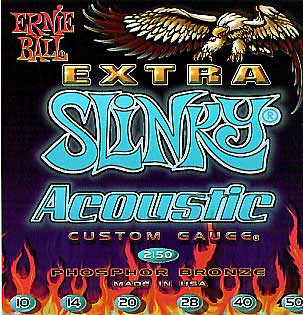 Cordes acoustique Extra slinky (custom gauge), phosphore bronze. Tirants: 10-14-20-28-40-50.