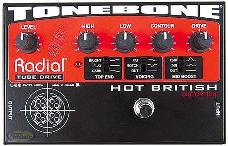 Pédale de saturation à lampes pour guitare électrique. Combine lampe 12AX7 et circuit hybride.