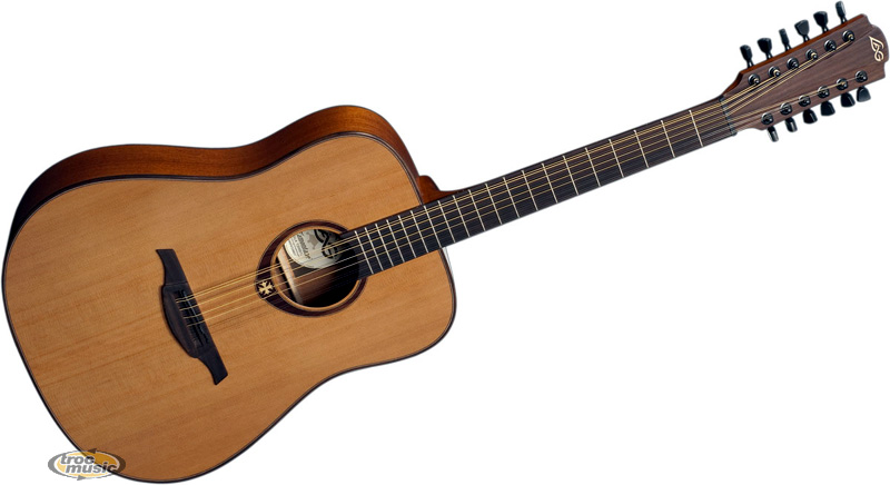 Guitare folk 12 cordes série Tramontane 200, finition French Satin. Table massive en cèdre rouge. Dos et éclisses en acajou. Filets en palissandre et en érable.